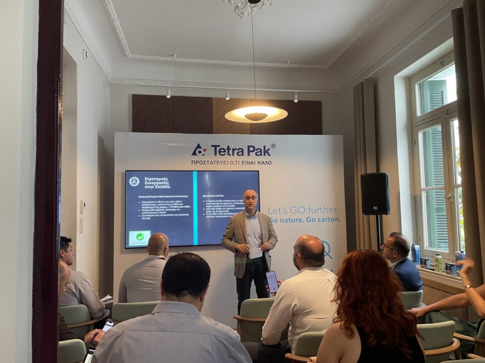 Συνεχίζοντας, ο Key Account Director, αναφέρθηκε στην προσήλωσή στην καινοτομία και τη δέσμευσή της Tetra Pak για χρήση 10% ανακυκλωμένου πλαστικού στις χάρτινες συσκευασίες της μέχρι το 2025, ενώ συμπληρώνεται με την εισαγωγή των μη αποσπώμενων καπακιών στις συσκευασίες, που μειώνουν τα απορρίμματα, καθώς ανακυκλώνονται μαζί με τη συσκευασία.