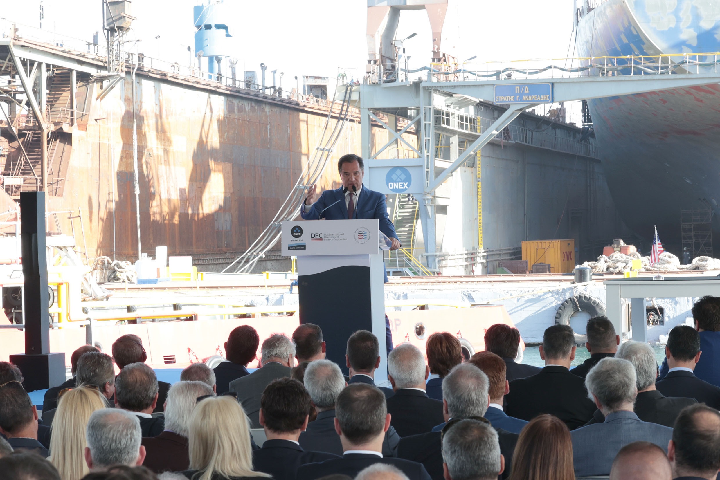 Τα άπειρα τηλεφωνήματα αγωνίας για το πώς πηγαίνει το έργο στην Ελευσίνα, θυμήθηκε ο υπουργός Εργασίας και Κοινωνικής Ασφάλισης Άδωνις Γεωργιάδης, κατά την τελετή υπογραφής της συμφωνίας χρηματοδότησης των Ναυπηγείων Ελευσίνας από τον αμερικανικό αναπτυξιακό χρηματοδοτικό οργανισμό DFC.