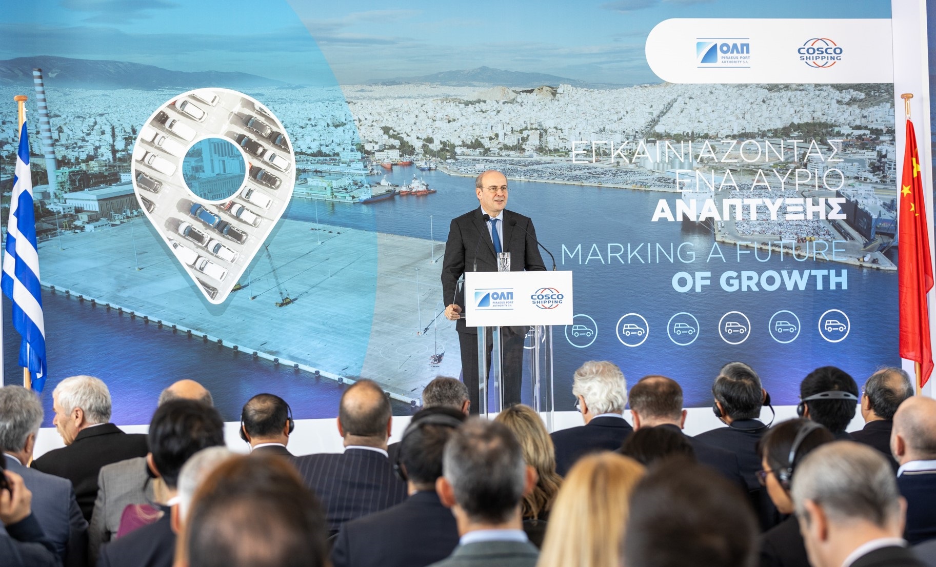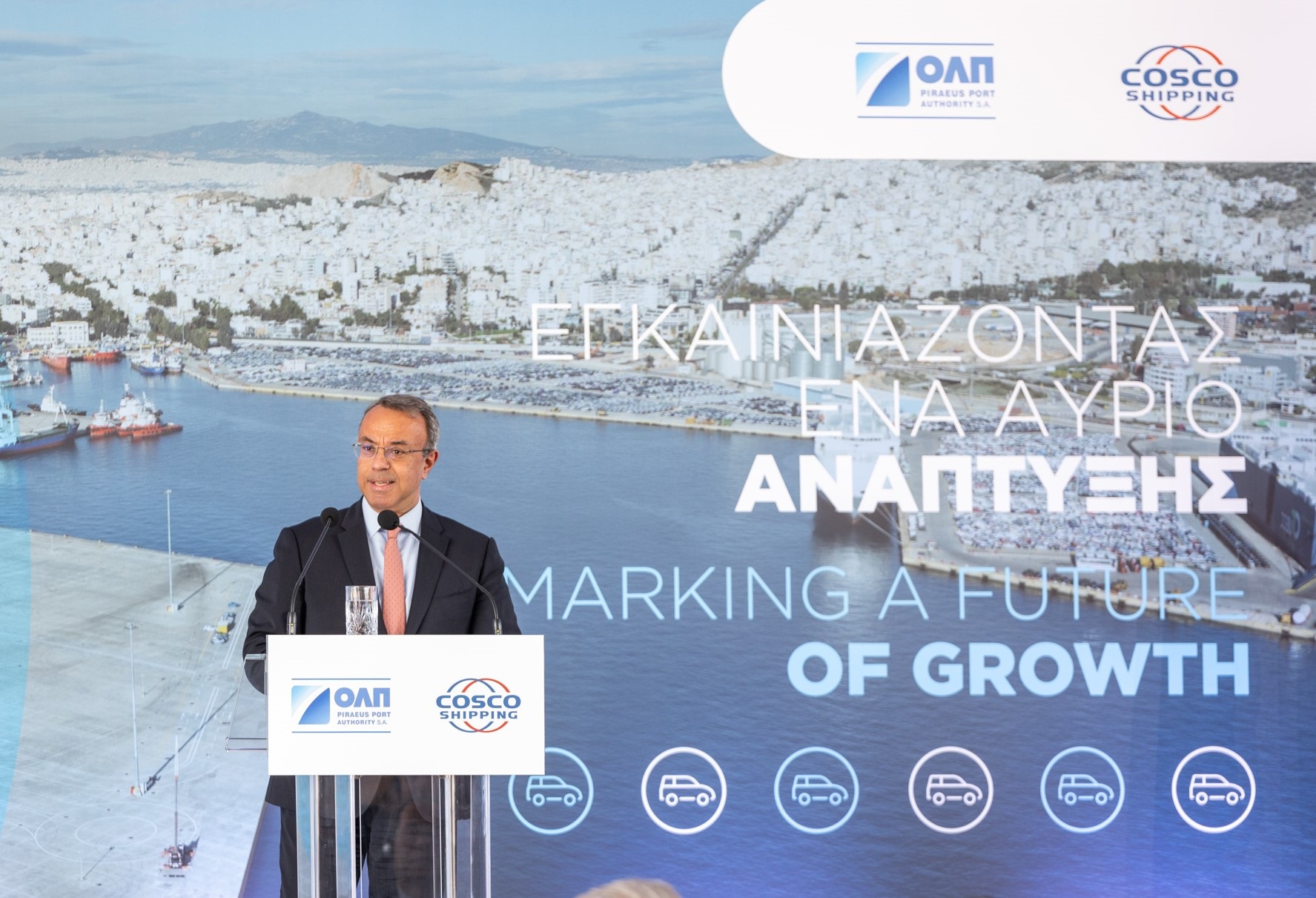 Ο υπουργός Εθνικής Οικονομίας και Οικονομικών Κωστής Χατζηδάκης, κατά τον χαιρετισμό του, σημείωσε ότι: «Οι θετικές εξελίξεις στο λιμάνι του Πειραιά είναι μία ουσιαστική συμβολή για την οικονομική ανάπτυξη προς όφελος όλων των Ελλήνων. Τη σημερινή επέκταση του car terminal του Λιμένα Ηρακλέους θα ακολουθήσουν πολύ περισσότερα έργα αναβάθμισης των λιμενικών υποδομών της χώρας τους επόμενους μήνες και τα επόμενα χρόνια. Η πολιτική που εφαρμόζουμε -συνολικά ως Κυβέρνηση και ως ΤΑΙΠΕΔ-για την αξιοποίηση της Δημόσιας Περιουσίας στα μεγαλύτερα ελληνικά λιμάνια, μόνο οφέλη θα δημιουργήσει για την Ελλάδα. Και δεν είμαστε παρά μόνο στην αρχή».
