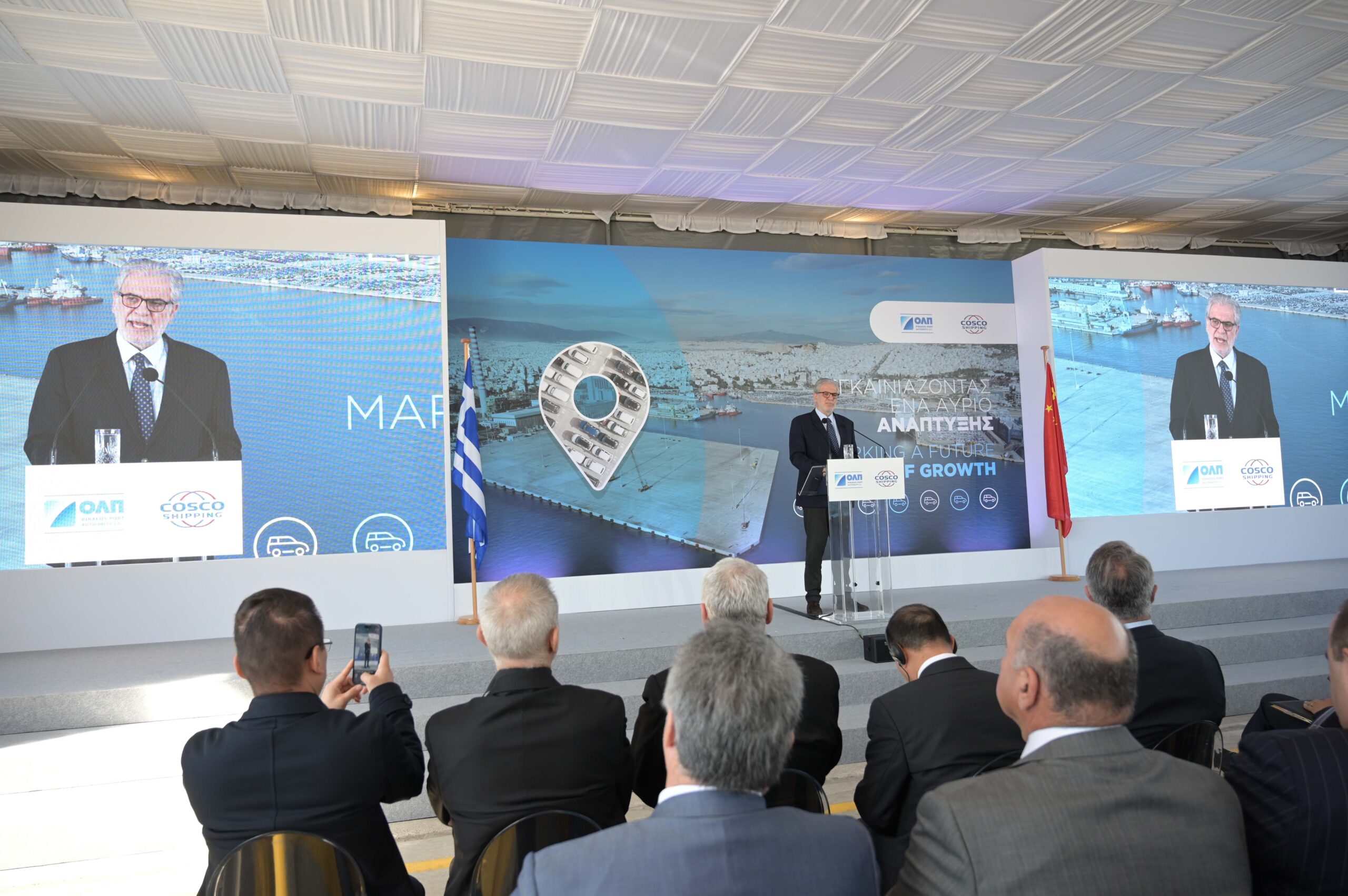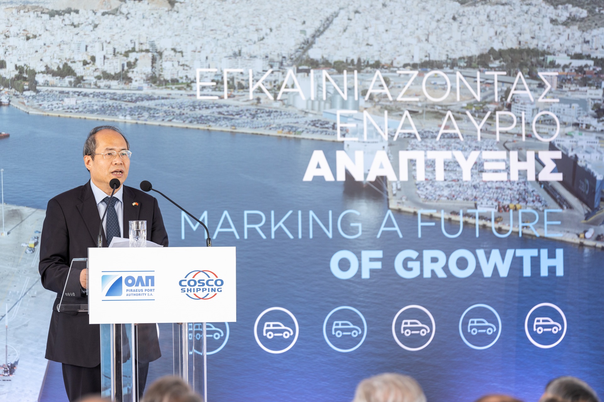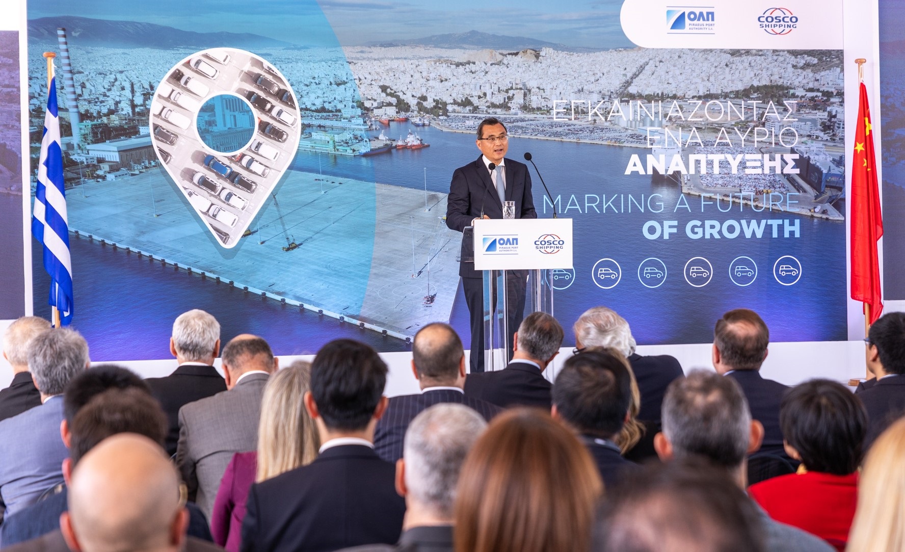 Κατόπιν, ο πρόεδρος της ΟΛΠ Α.Ε. Yu Zenggang χαρακτήρισε το νέο έργο ορόσημο για το λιμάνι του Πειραιά αλλά και τη χώρα για τον τομέα μεταφορών, λέγοντας ότι: «Γινόμαστε μάρτυρες ενός οράματος για τη δημιουργία ενός προηγμένου και αποδοτικού τερματικού σταθμού οχημάτων στο λιμάνι του Πειραιά που θα ενισχύσει τη δυναμικότητά του, καθιστώντας το ένα από τα σημαντικότερα λιμάνια στη Μεσόγειο αλλά και στην ευρύτερη περιοχή».