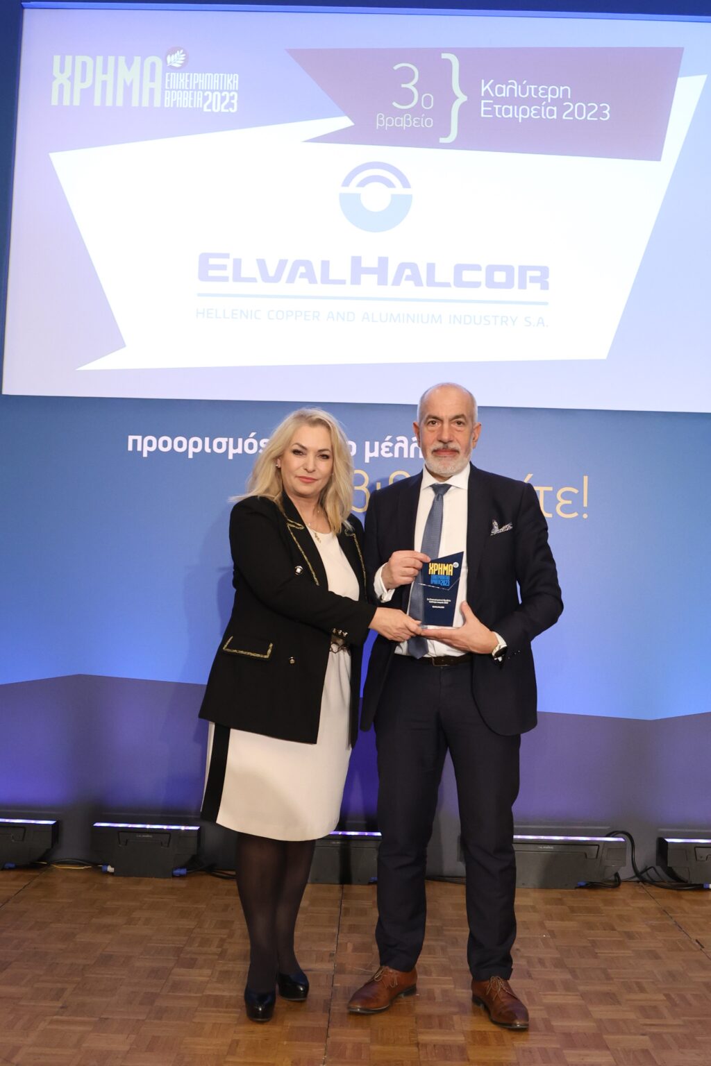 Το 1ο βραβείο στην κατηγορία Διεθνοποίησης και το 3ο βραβείο στην κατηγορία Καλύτερη Εταιρεία, έλαβε η ElvalHalcor στα φετινά Επιχειρηματικά Βραβεία Χρήμα 2023, αποκτώντας δύο σημαντικές διακρίσεις που επιβεβαιώνουν την ηγετική θέση που κατέχει μεταξύ των επιχειρήσεων που στηρίζουν την ελληνική οικονομία και ξεχωρίζουν στον διεθνή επιχειρηματικό στίβο.