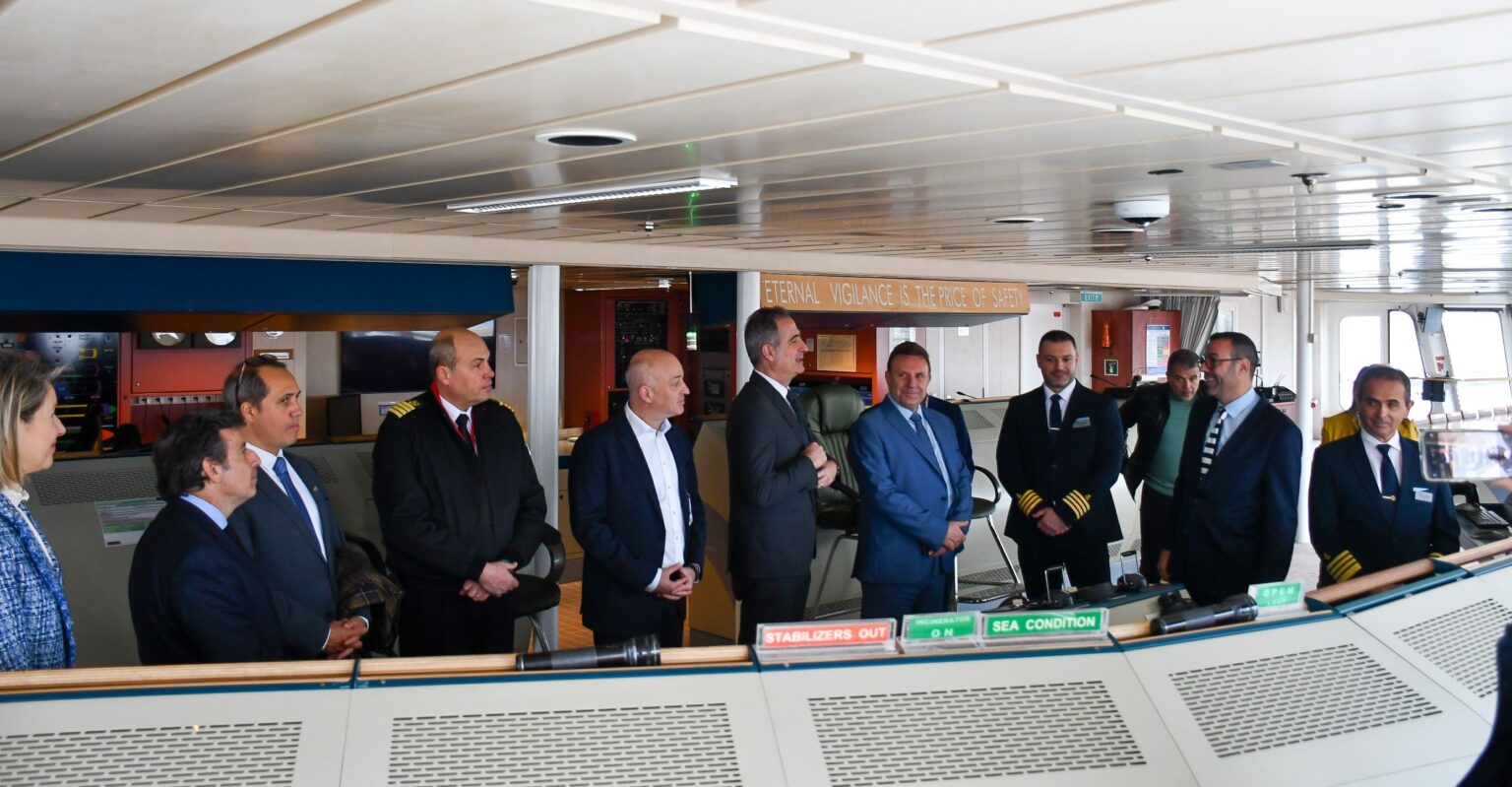 Στο πλαίσιο της σημερινής παραμονής του πλοίου στο λιμάνι, διοργανώθηκε συμβολική εκδήλωση με τη συμμετοχή εκπροσώπων τοπικών και εθνικών φορέων, που συνεργάζονται για την περαιτέρω ανάδειξη των μοναδικών εμπειριών και της απαράμιλλης φιλοξενίας που προσφέρει ο προορισμός.