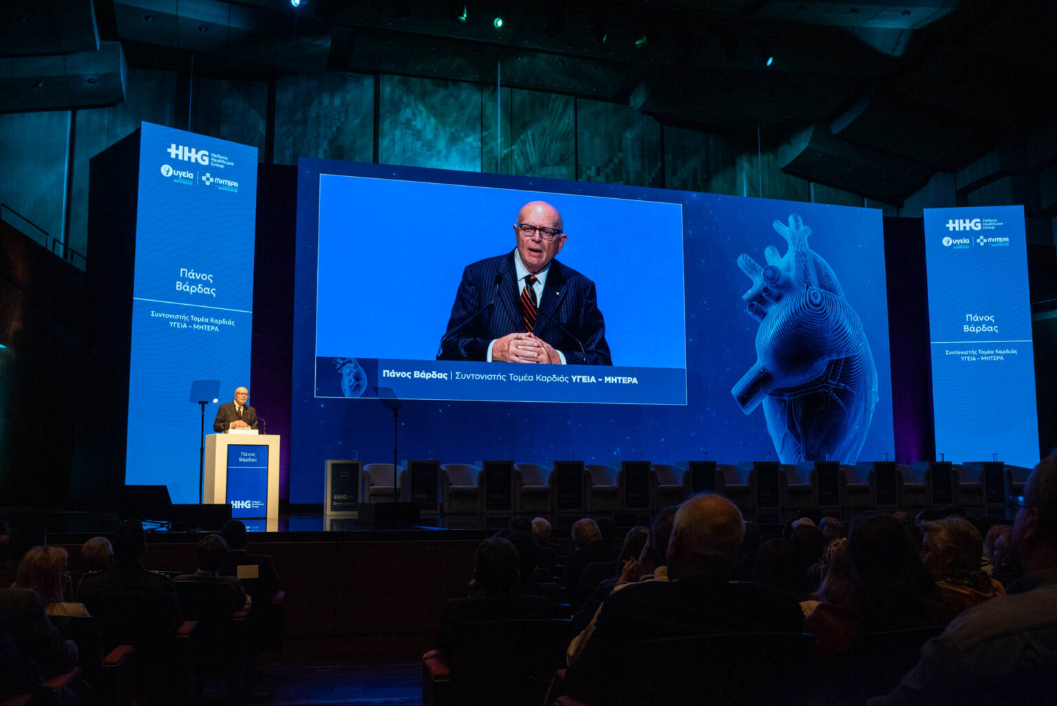 Κατόπιν, ο καθηγητής Πάνος Βάρδας, Συντονιστής του Τομέα Καρδιάς των νοσοκομείων ΥΓΕΙΑ και ΜΗΤΕΡΑ, παρουσίασε τις τελευταίες εξελίξεις στον τομέα της καρδιοαγγειακής ιατρικής, με έμφαση στην καινοτομία και τη χρήση τεχνολογιών αιχμής, όπως η επεμβατική καρδιολογία και η τεχνητή νοημοσύνη.