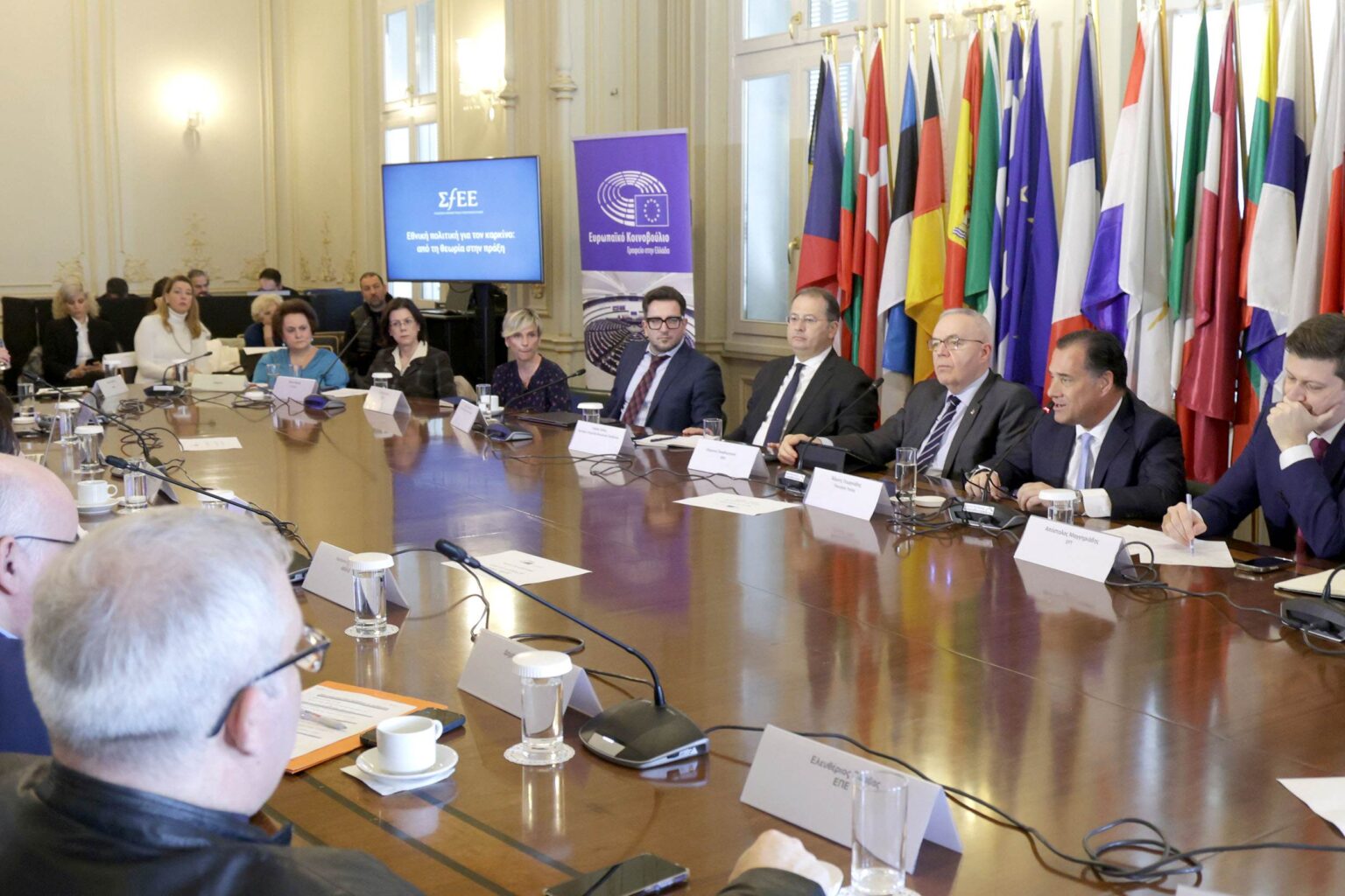 Του Γιάννη Χαλκιαδάκη. Για τις ασθένειες, που πριν από δέκα χρόνια θεωρούνταν θανατηφόρες και τώρα αντιμετωπίζονται, αλλά και για το προσδόκιμο ζωής των ανθρώπων, που έχει αυξηθεί, αποτελώντας μια μεγάλη πρόοδο της ανθρωπότητας, αλλά ταυτόχρονα και μια μεγάλη πρόκληση, έκανε λόγο ο υπουργός Υγείας Άδωνις Γεωργιάδης, συμμετέχοντας σε συζήτηση στρογγυλής τραπέζης του Συνδέσμου Φαρμακευτικών Επιχειρήσεων Ελλάδος (ΣΦΕΕ) με τίτλο «Εθνική Πολιτική για τον Καρκίνο: από τη θεωρία στην πράξη», στα γραφεία του Ευρωπαϊκού Κοινοβουλίου.