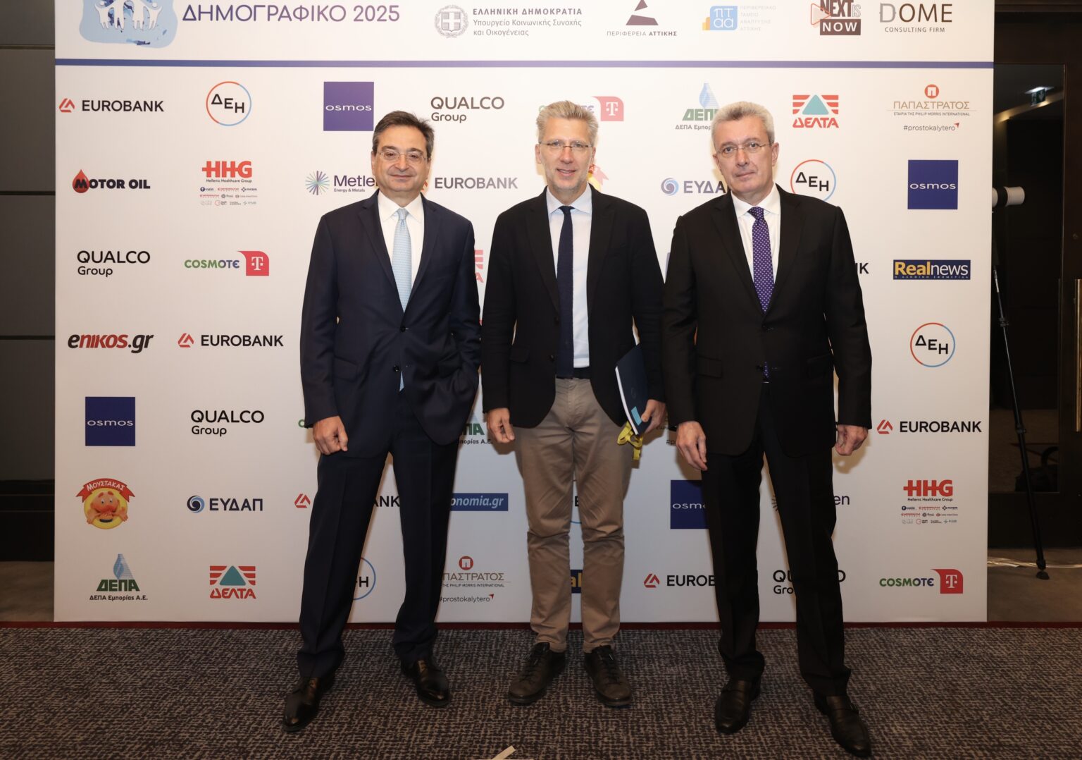 Οι Δημογραφικές Προκλήσεις και Πολιτικές και η απόσταση από τη Θεωρία στην Πράξη αναλύθηκαν σε συζήτηση στην οποία συμμετείχαν, ο υφυπουργός Εργασίας & Κοινωνικής Ασφάλισης, Κωνσταντίνος Καραγκούνης, ο γενικός γραμματέας Δημογραφικής & Στεγαστικής Πολιτικής, Κωνσταντίνος Γλούμης – Ατσαλάκης, ο Κοινοβουλευτικός Εκπρόσωπος του ΠΑΣΟΚ – ΚΙΝΑΛ, Παύλος Γερουλάνος, ο γενικός διευθυντής Marketing & Εταιρικής Επικοινωνίας Ομίλου Eurobank, Μιχάλης Βλασταράκης.