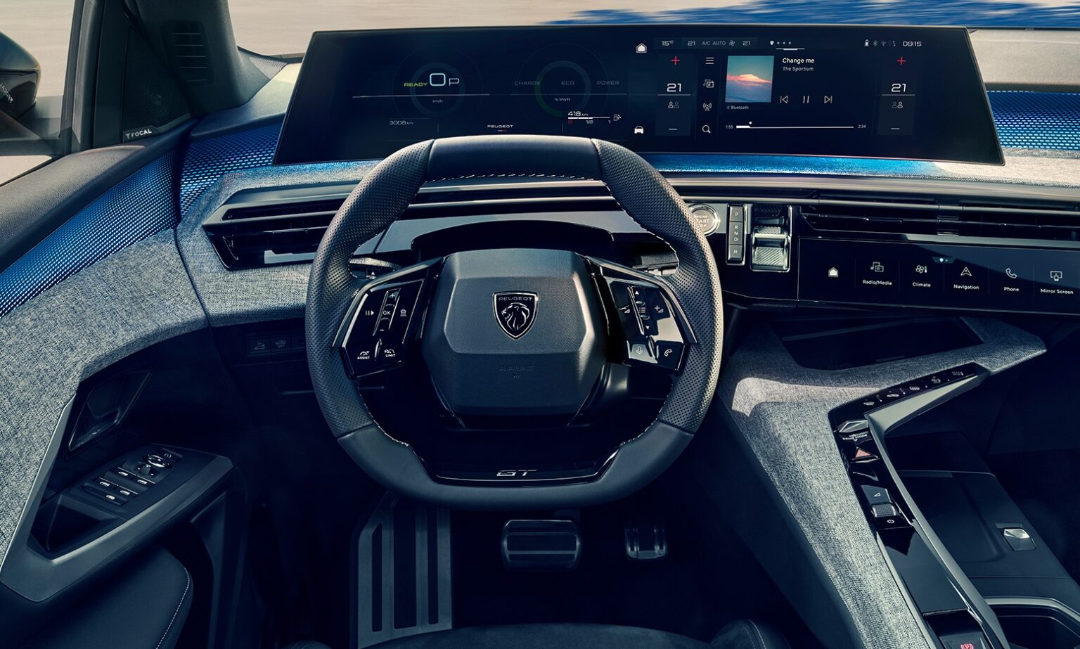 Στο εσωτερικό, το Panoramic i-Cockpit® αποτελεί την καρδιά της εμπειρίας. Η αιωρούμενη κυρτή οθόνη 21 ιντσών, που συνδυάζει τον ψηφιακό πίνακα οργάνων με το σύστημα πολυμέσων, προσφέρει μια υπερσύγχρονη και εργονομική διάταξη. Ο φωτισμός LED και οι επενδύσεις από premium υλικά, όπως αλουμίνιο, Alcantara ή συνδυασμό δέρματος, δημιουργούν μια ατμόσφαιρα ανώτερης ποιότητας.